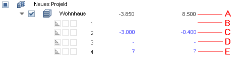 - C: Los valores se verán en azul cuando los ajustes de altura de los planos estándar en un archivo de dibujo difiera de los parámetros de altura asignados al nivel estructural superior.