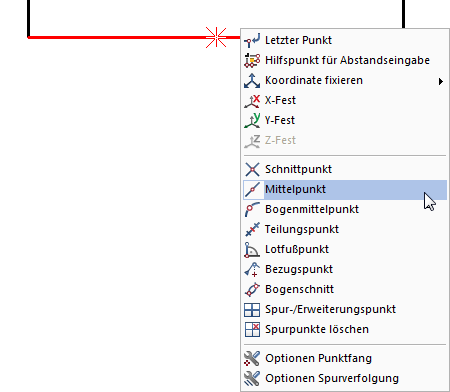 Figura: Identifica el punto central de la línea existente abriendo el menú contextual directamente en un elemento.