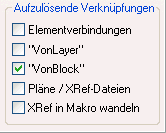 Die jeweilige Variante wählen Sie in den Optionen..., Registerkarte Erweiterte Einstellungen im Bereich Aufzulösende Verknüpfungen durch Aktivieren/Deaktivieren der Optionen Pläne / XRef-Dateien oder/und XRef in Makro wandeln.