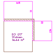 Wenn Sie die Option einschalten, dann werden bei Räumen und Geschossen die Ausbau-Seitenflächen nur noch an angrenzenden Bauteilen (z.B. Wände, Stützen, Aufkantungen, Decken bzw. Deckenränder) berechnet, z.B. bei Eingangsbereichen oder Balkonen. Diese Option kann nur dann angewendet werden, wenn die Räume und Geschosse von 3D-Architekturelementen wie Wänden begrenzt sind.