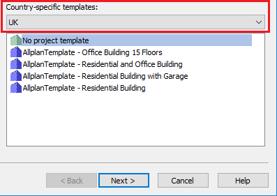 You can define projects in a country-specific manner. This means that a project gets the resources (for example, hatching, patterns, layers) and reinforcement settings of a specific country. Depending on your license, you can install one or more additional country packages. For example, you can then create a project with resources and settings for Germany and another one with resources and settings for the UK.