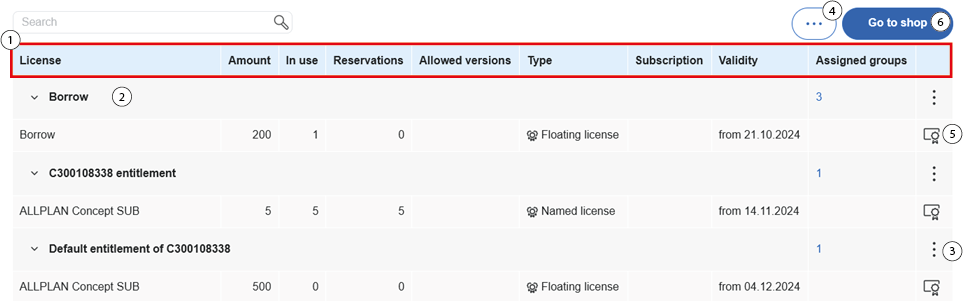 Area with the licenses to which every employee of a customer has access. Licenses are issued on a first come, first serve basis. |