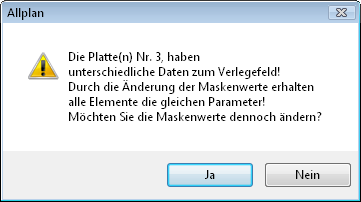 werden die Parameter des Verlegefeldes wieder auf alle Platten geschrieben. Die mit der Funktion