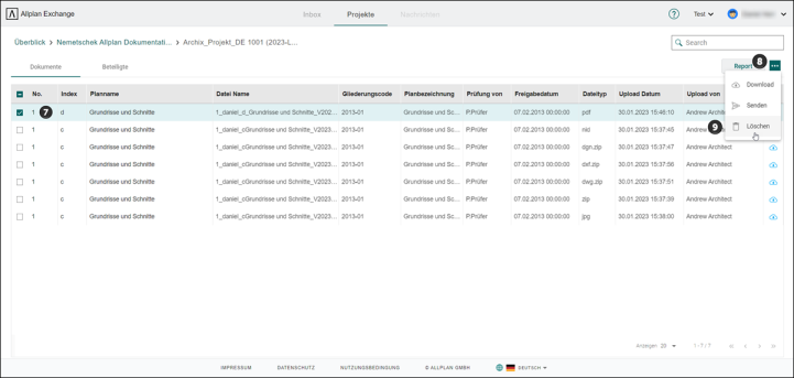 - Sie haben die Übersicht aller Dokumente zum betreffenden ALLPLAN Exchange Webprojekt eingeblendet (vgl. Abschnitt „Übersicht aller Dokumente zu einem Webprojekt anzeigen").