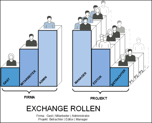 Die oben zu sehende Prinzipskizze stellt die Rollen und Zugriffsrechte noch einmal grafisch dar.
