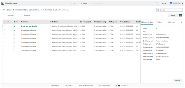 Mit ALLPLAN Exchange behalten Sie jederzeit die Übersicht über Verlauf und Historie der aktuell auf Allplan Exchange Web gespeicherten Dokumente. Diese Informationen können Sie z. B. als Grundlage für Auswertungen oder zur Führung von Nachweisen heranziehen.