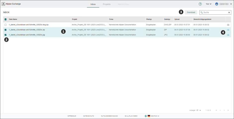 - Sind Sie bei ALLPLAN Exchange Web bereits angemeldet, öffnet sich automatisch Ihre Inbox.