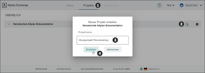 Schritt 3: ALLPLAN Exchange Webprojekt anlegen
