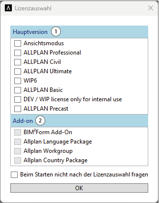 Hinweis: Wenn Sie ALLPLAN 2026 beenden oder Sie sich ausloggen, wird Ihre Lizenz automatisch an den Server zurückgegeben.
