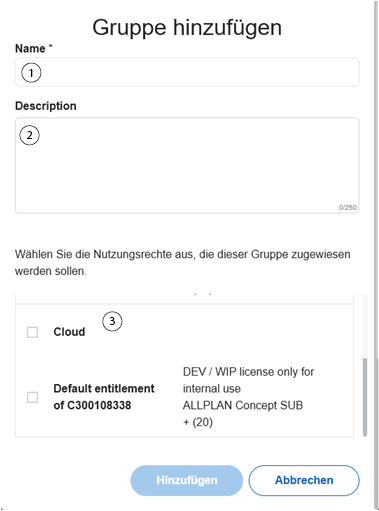 Hier können Sie eine Beschreibung für die Gruppe (maximal 250 Zeichen) eingeben. Dies ist kein Pflichtfeld.