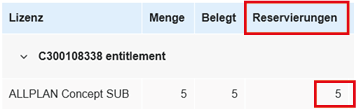 Hinzufügen. Sie sehen jetzt im Bereich Lizenzen und Reservierungen in der Spalte Reservierungen, ob und wie viele Reservierungen je Lizenz vorhanden sind.