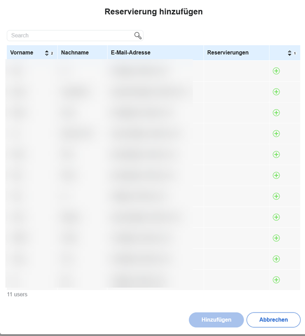 - Geben Sie im Suchfeld den Namen des Users ein für den Sie eine Lizenz reservieren wollen oder scrollen Sie zum gewünschten Benutzer.