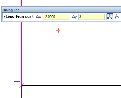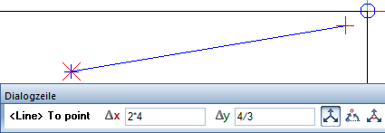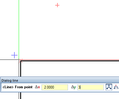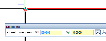 When making entries in the dialog line, you can see at once whether your entries refer to a point snapped or to the point you placed last: