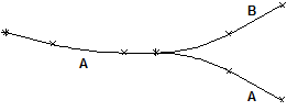 Note: The program creates the composite element more quickly when you place the reference point roughly in the middle of the new composite element. The direction of the composite element is defined by the minimum x value (if equal, the y value) of the reference element, or the start point of an existing composite element.