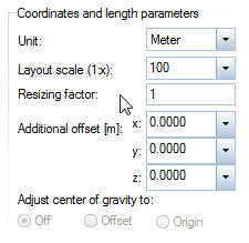 You can use this to enlarge (>1) or reduce (<1) coordinates and length values in the data to be converted. This parameter is always available. For more information, see Resizing factors.