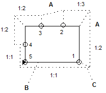 You can use this tool to draw slopes by entering the outline of the area to slope, or the edge of the slope and then its angle. You can define sloping areas with different angles of inclination.
