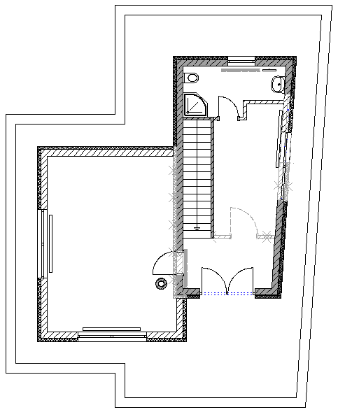 You can also use the Building alteration drawing, black/white drawing type as the basis for detailed design: here, too, you can use specific hatching styles to display the materials used for new building, demolition and as-built objects (provided you have used the corresponding, material-based wall and column types). As opposed to the Building alteration drawing, color/hatching drawing type, however, the Building alteration drawing, black/white drawing type is optimized for printing in black/white.
