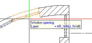 When you point to an element but do not click, the entire element is displayed in the Selection preview color in plan, elevation and perspective views. The default setting is orange. This selection preview is particularly useful for complex drawings, as you can see whether you have found the right element even before you select it.
