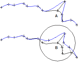 You can use this option to define a radius within which spline control points are modified. When the radius is set to 0, the modification is simply based on the reference point.