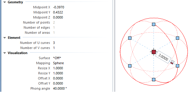 Using handles, you can change the radius of a sphere directly or by entering a value in a data entry box. The Properties palette provides further modification options.