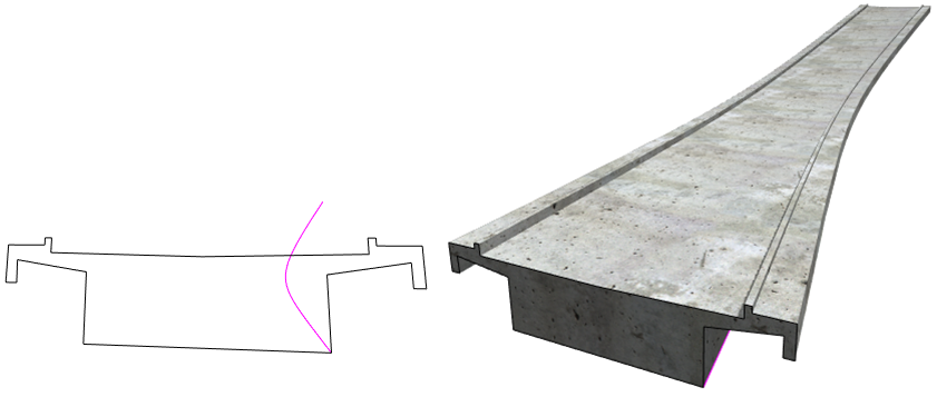 The profile may have gaps. Allplan displays a preview of the extruded element, presenting several options for turning the element along the path.